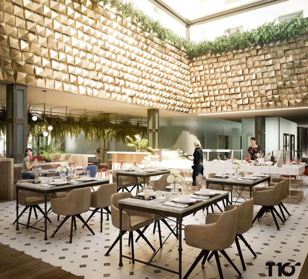 Selon les sources du cabinet d’architectes T10Team, les travaux de rénovation de l’ancien Ayre Sevilla ont consisté à « libérer le rez-de-chaussée, rénover la façade, réaménager les salles d’événements, optimiser les cuisines et les espaces communs, ainsi qu’un espace piscine-bien-être », tandis que les travaux d’aménagement intérieur ont été réalisés par l’équipe de designers de Lázaro Rosa-Violán.