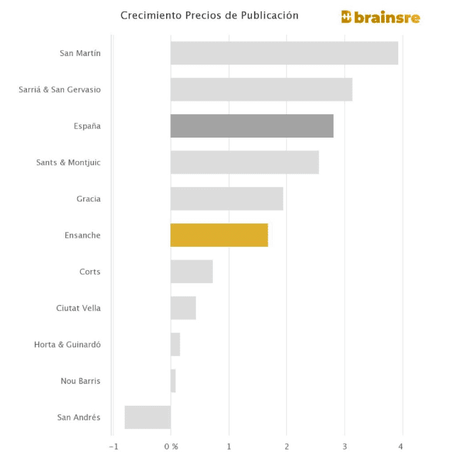 Tous les quartiers qui composent la ville de Barcelone ont enregistré une augmentation des prix des logements au cours du dernier trimestre.