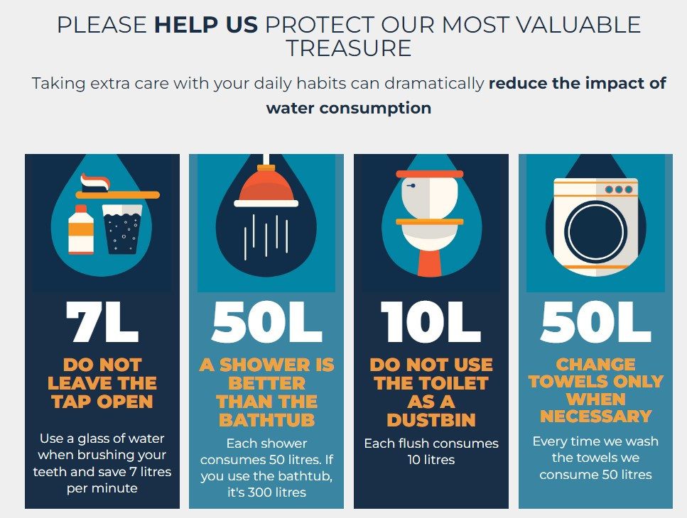 « Parallèlement à l’activation des mesures, il est nécessaire de consommer l’eau de manière responsable dans tous les domaines et à tous les niveaux et de n’utiliser que la quantité d’eau nécessaire », précise l’ACA. C’est pourquoi, entre 2022 et 2023, le gouvernement a mené plusieurs campagnes pour sensibiliser les citoyens à la nécessité d’économiser l’eau.