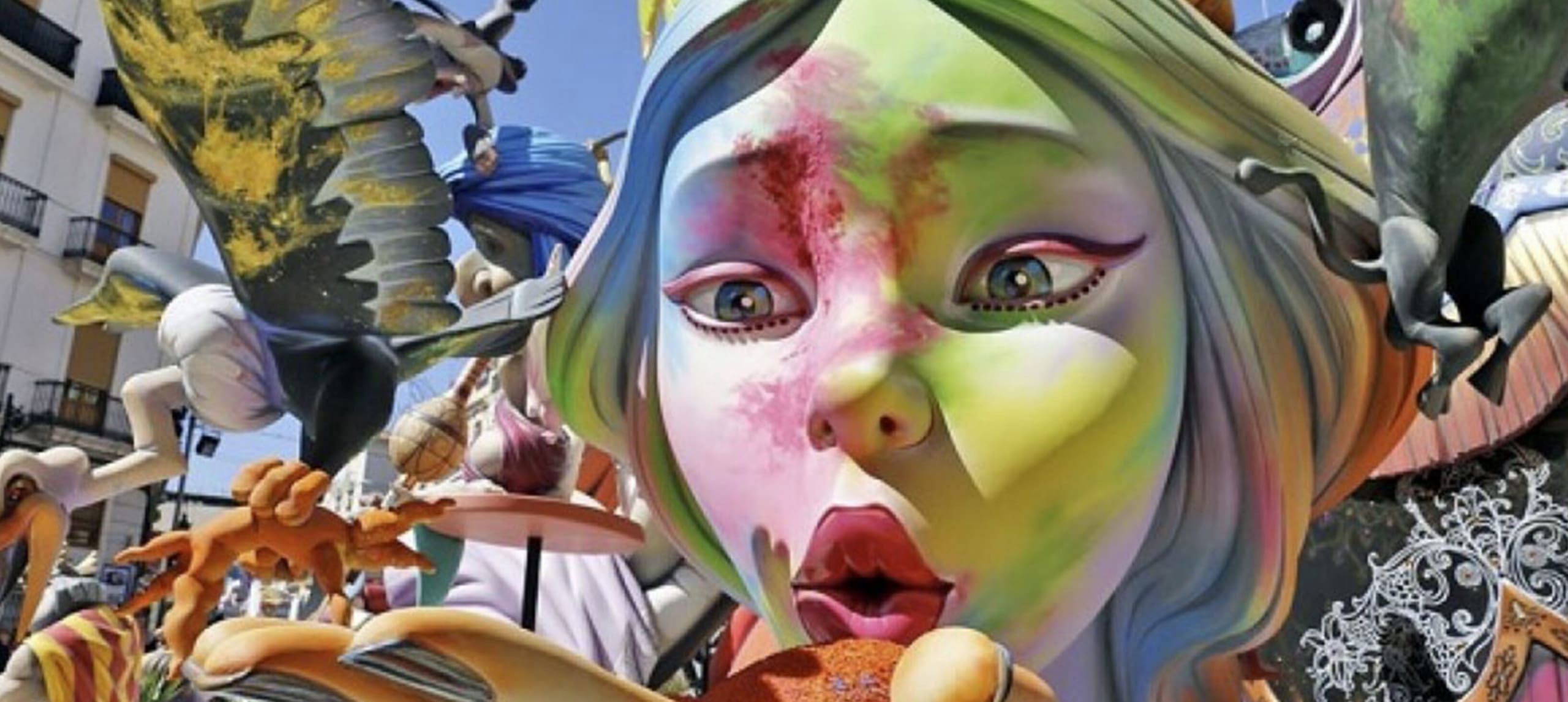 Compliqué de savoir avec certitude l’origine de ces célébrations cela dit, le mot “falla” en valencien vient du latin Facula qui veut dire torche, le feu étant un élément central ici puisque à chaque veille de Saint José le 19 mars (patron des charpentiers et de la ville) les habitants avaient coutume de brûler des torches ainsi que leurs vieilles affaires pour faire place au printemps. Différent d’un carnaval où des personnages sont construits et défilent, ici ce sont des groupes de personnages représentant une satire de la société ou de faits ayant marqué l’année écoulée qui sont elaborés. C’est la Planta de ces monuments qui se déroule les 15 et 16 mars. Autrefois en bois, ces immenses personnages tout en couleurs sont maintenant en polystyrène et constituent un musée à ciel ouvert et éphémère puisque toutes ces créations finiront brûlées le soir du 19 mars (sauf un personnage qui sera “sauvé” et rejoindra le fameux musée des Ninots).