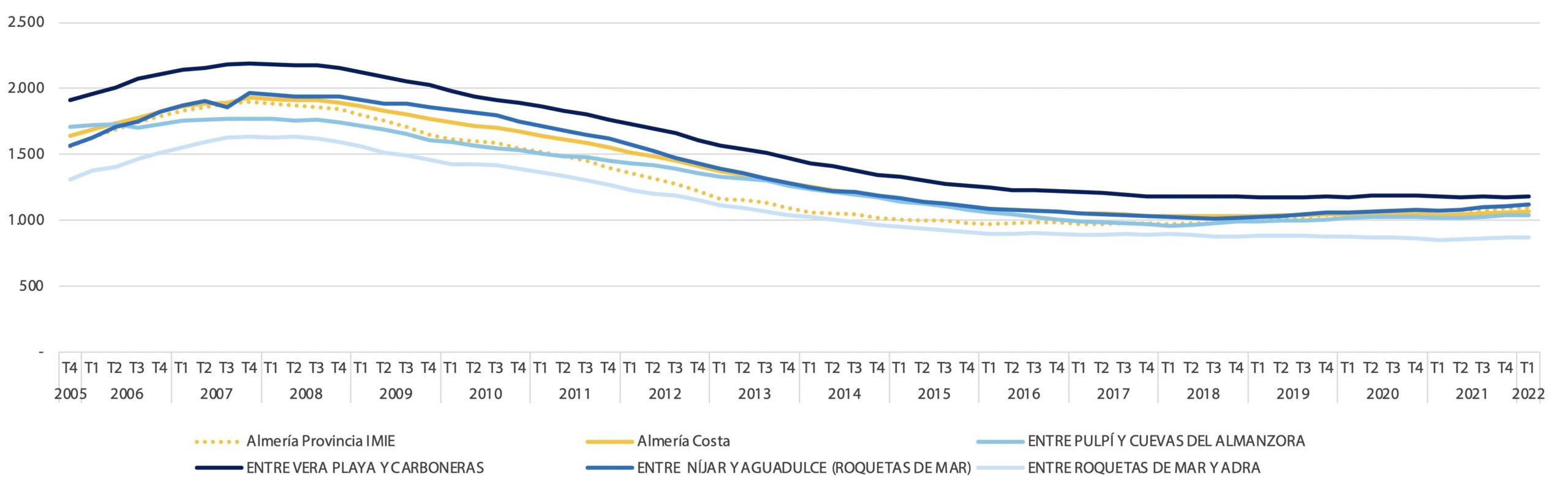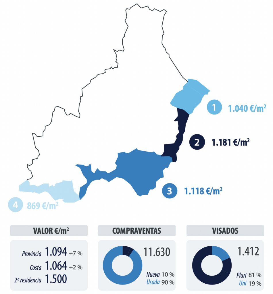 Le marché côtier d’Almeria a l’un des poids les plus élevés sur le total de la province, représentant 80 % des ventes et 78 % du total des approbations dans la province.