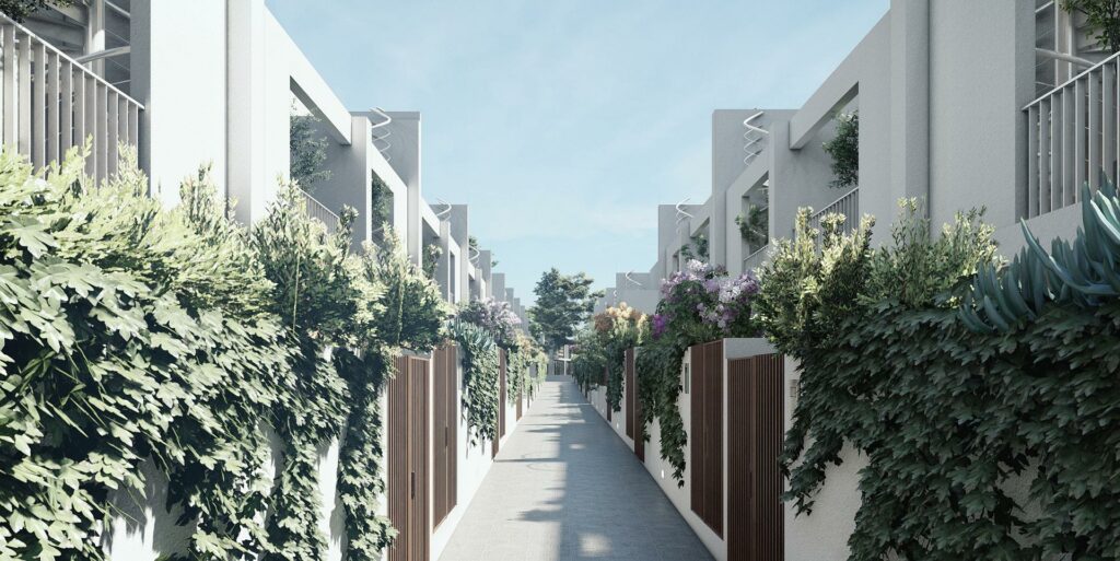 Il existe 3 types de maisons, très similaires les unes aux autres, et toutes ont 2 chambres et 2 salles de bain et une superficie comprise entre 199,41 et 217,34m² (les mètres carrés des espaces extérieurs varient).