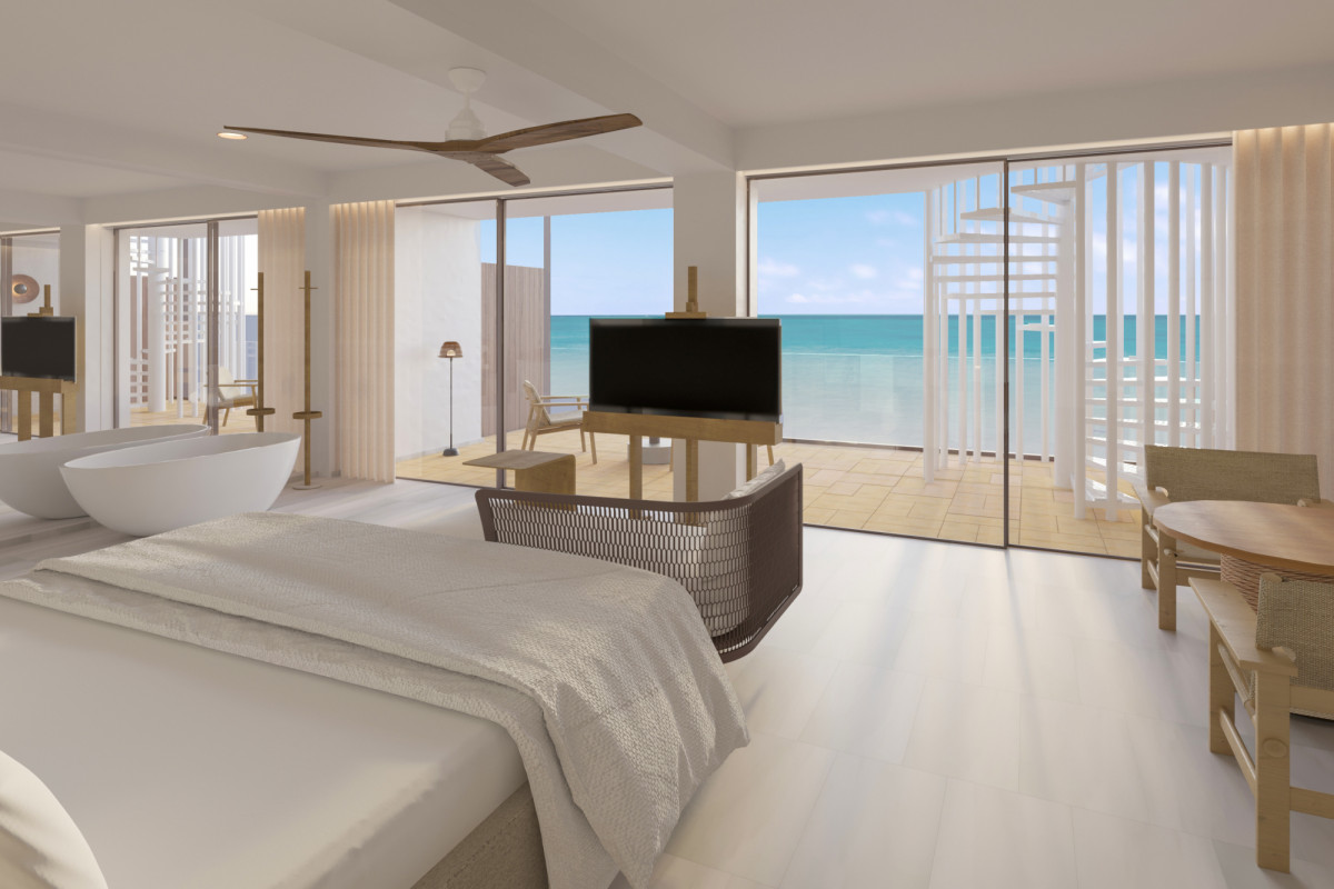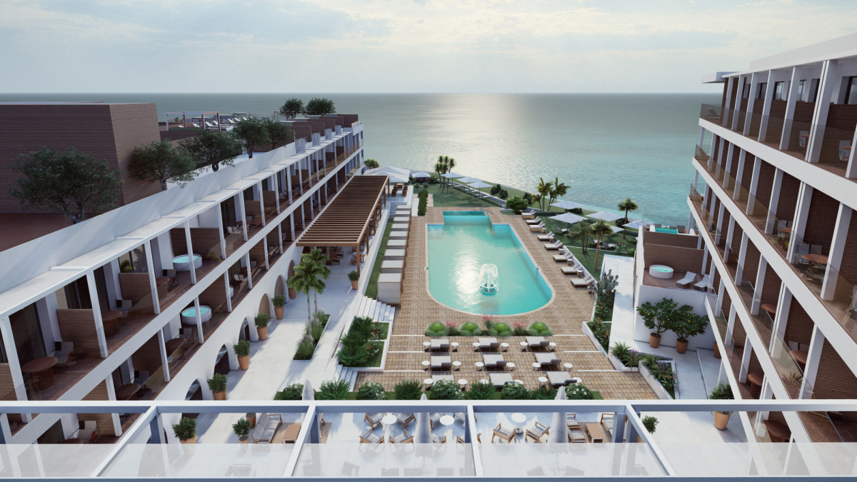 L’hôtel comptera 159 chambres, dont certaines avec piscine privée, et sera aménagé comme un grand balcon donnant sur la mer et la lumière. Il sera doté de grandes terrasses et de porches caractéristiques de l’architecture méditerranéenne, qui s’entremêlent pour relier les espaces extérieurs et intérieurs.