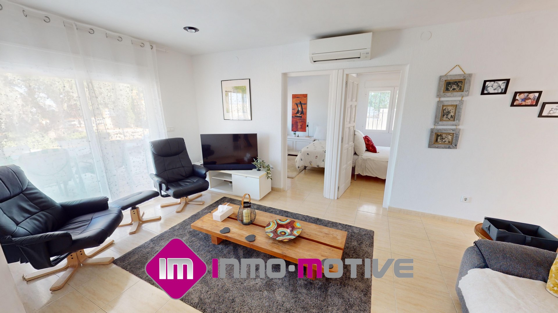 Au rez-de-chaussée, il y a un grand salon, une salle à manger, une cuisine et deux chambres doubles avec salle de bain attenante. Au premier étage, il y a quatre chambres à coucher avec salles de bains attenantes et un autre salon. Au premier étage, il y a un autre salon et une salle de bain complète.