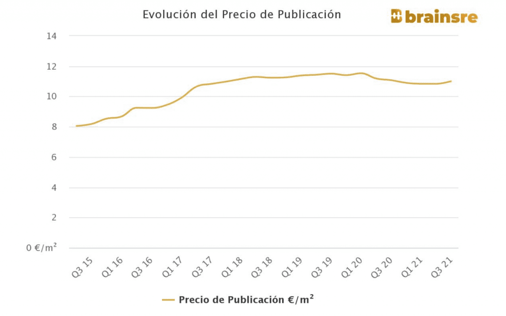 Le prix de publication d’un logement en location en Espagne s’élève en moyenne à 10,1 euros par m2 et par mois, ce qui représente une baisse de 1,9% du taux interannuel. De plus, en comparaison trimestrielle, les prix ont baissé de 1%, selon les données de la plateforme de big data immobilière Brains Real Estate.