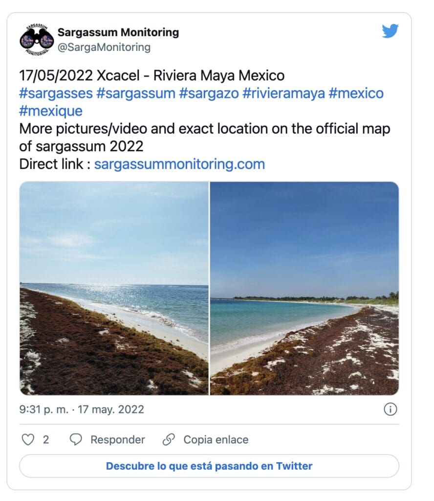 Le dernier bulletin sur la surveillance et la prévision des sargasses dans la mer des Caraïbes, qui est produit par l’Institut océanographique du golfe et de la mer des Caraïbes (IOGMC), détaille qu’il existe une « quantité estimée de sargasses à 62 609 tonnes ». Bien qu’ils expliquent que cela ne signifie pas que cette quantité d’algues puisse atteindre la côte mexicaine, ils soulignent que « cette quantité représente un nouveau maximum atteint pour cette région ».