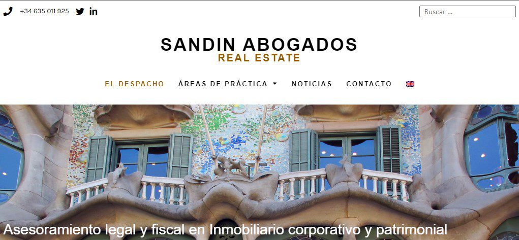SANDIN ABOGADOS est un cabinet d’avocats fondé à Barcelone, spécialisé dans le conseil juridique et fiscal en matière d’immobilier pour les petites et moyennes entreprises, les investisseurs et les particuliers fortunés.
