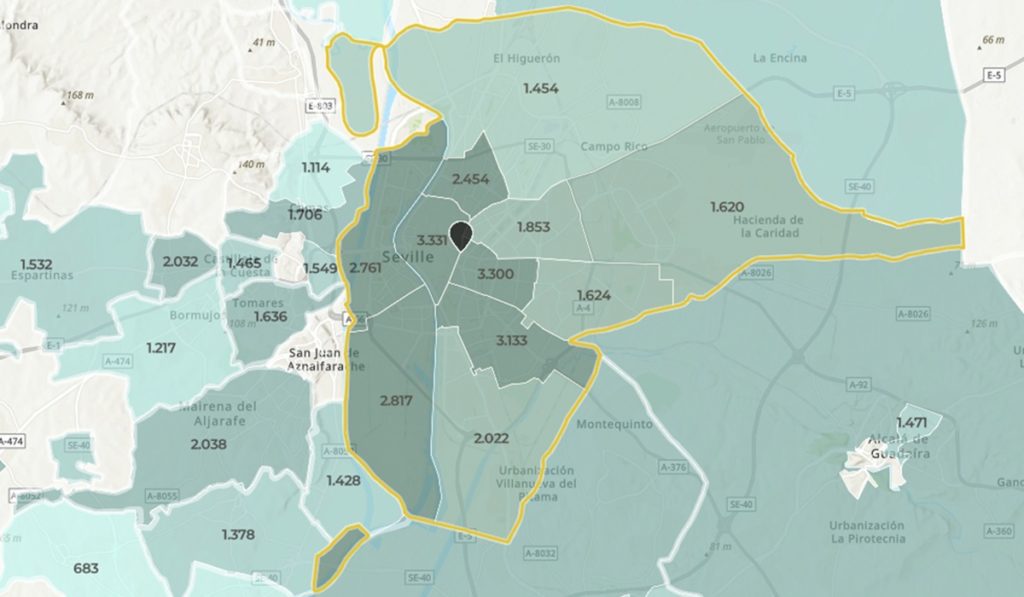 À Casco Antiguo (3.331 euros par m2), Nervión (3.300 euros par m2) et Sur (3.133 euros par m2), le prix des logements neufs dépasse largement les 3.000 euros par m2 en moyenne, tandis que dans d’autres quartiers comme San Pablo -Santa Justa (1.853 euros par m2), Cerro-Amate (1.624 euros par m2), Este-Alcosa-Torreblanca (1.620 euros par m2) et Norte (1.454 euros par m2) n’atteignent pas 2.000 euros par m2, selon les données Brainsre.