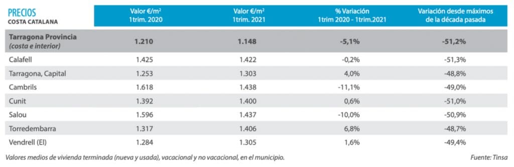 En 2020, les prix du premier trimestre dans la province ont enregistré des baisses modérées, affectant les communes avec une intensité différente, Cambrils et Salou se distinguant par les baisses les plus importantes. Il existe une nette divergence entre les marchés de la construction neuve et du logement d’occasion en termes de comportement des prix, les prix du neuf se sont stabilisés et les baisses se sont concentrées sur le logement d’occasion. De même, les tarifs de location ont été maintenus.