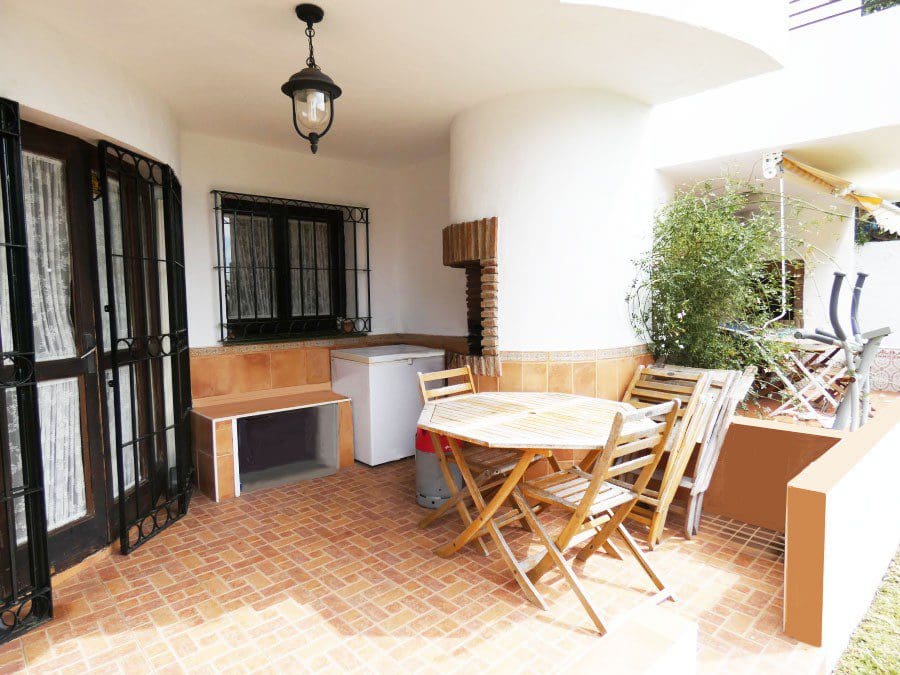 Cette maison se compose de trois chambres à l’étage avec une salle de bains. La chambre principale ouvre sur une belle terrasse couverte avec vue sur la mer et les jardins de la résidence. Au niveau principal on trouve une autre salle de bains en entrant sur la droite (transformé en cabinet de toilette mais qui peut aisément retrouver son état d’origine), une petite remise et une grande cuisine qui donne sur la pièce à vivre avec cheminée et terrasse avec coin barbecue et buanderie. Cette terrasse a un accès direct sur les jardins. La résidence a une enceinte sécurisée avec de nombreux endroits pour se garer et possède une belle et grande piscine avec de larges espaces pour prendre le soleil. Le centre animé d’Arroyo de La Miel avec ses restaurants typiques, ses bars, ses boutiques, ses services et administrations se trouve à 8 minutes en voiture mais il est possible également de s’y rendre en train via un arrêt de train qui est à seulement 10 minutes à pied et descendre à la gare centrale. L’aéroport de Malaga est quant à lui à 20 minutes en voiture et il est également posible d’y aller en train. Dans un périmètre proche de la résidence on trouve également des grand supermarchés, des restaurants, coiffeur, pharmacie et colleges. Si vous cherchez une maison sur Benalmadena avec trois chambres qui soit au calme, proche de la mer et dans un environement sécurisé avec jardins et piscine, celle-ci devrait susciter votre intérêt.