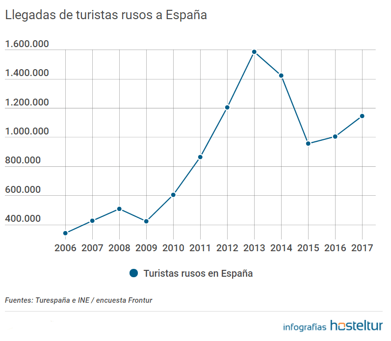 La Russie est le marché touristique en Espagne qui a le plus augmenté en 2017 et tout indique que cette tendance se maintiendra cette année, consolidant le pays comme la destination européenne préférée des Russes. Les perspectives pour 2018 sont « imbattables », comme le rapporte Turespaña depuis le salon touristique du MITT à Moscou, qui a ouvert ses portes cette semaine.
