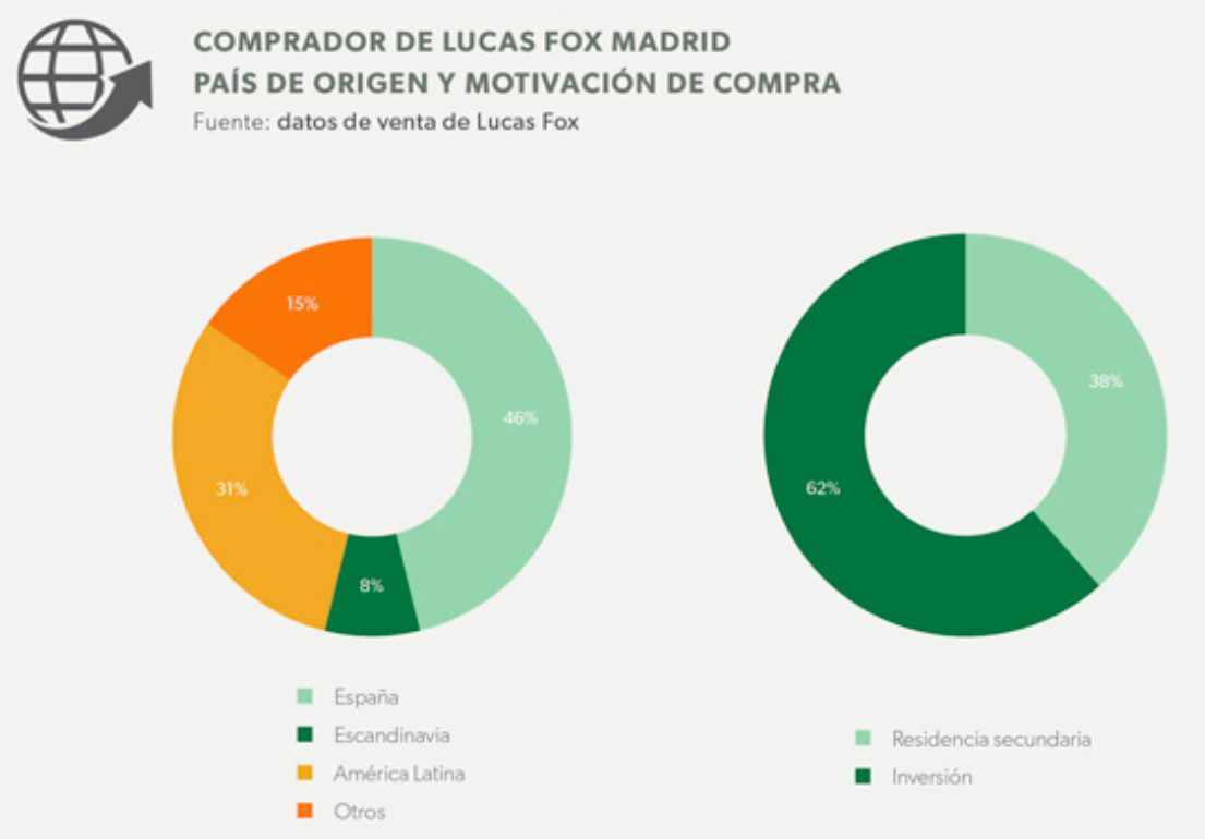 Ce qui retient l’attention dans ce dernier rapport, c’est la forte progression des latino-américains sur le marché. Ces acheteurs représentent quasiment un tiers de toutes les transactions pour les logements de luxe à Madrid au premier semestre 2017, et leur part est à la hausse : 31% des acheteurs de luxe aujourd’hui contre 11% en 2016 chez Lucas Fox. La plupart sont des vénézuéliens, mexicains, colombiens ou argentins, et ont pour objectif premier l’investissement, bien avant la recherche d’une résidence secondaire. Les investisseurs espagnols dans les logements de luxe, représentent 46% des acheteurs. On peut par ailleurs souligner l’importance des acheteurs scandinaves sur ce segment du marché. Ils représentent en effet 8% des acheteurs de luxe à Madrid alors que les investisseurs qui ne sont ni latino-américains, ni espagnols, ni scandinaves, n’occupent « que » 15% des acheteurs.