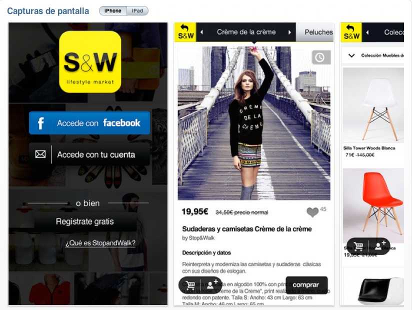 Stop&Walk c’est le premier site de ventes privées espagnoles qui propose des produits design et authentiques pour tous les goûts et dans tous les domaines, de la décoration d’intérieur aux vinaigres gastronomiques en passant par le prêt-à-porter, à des prix attractifs. En contact directement avec les designers et producteurs, le site se fait l’interface parfaite entre créateurs innovants et consommateurs curieux. Le site propose des produits de qualité pour tous, et bénéficie des tarifs optimum puisqu’il travaille sans aucun intermédiaire. Fondé par le serial entrepreneur Daniel Peréz Colomar, Stop&Walk surfe sur la vague des business 2.0 qui ont conquis le cœur de la nouvelle génération. Over connecté, Stop&Walk est consultable aussi sur Apple (iPhone et iPad) et sur Android avec des applis depuis lesquelles il est possible de consulter, acheter, et partager avec son entourage toutes ses trouvailles. Le Lifestyle Market espagnol a déjà convaincu plus de 200 000 utilisateurs depuis l’été 2012, et proposé près de 10 000 produits différents à ses aficionados. Il compte bien poursuivre sur cette lancée et a déjà entamé la conquête des marchés italien et français.