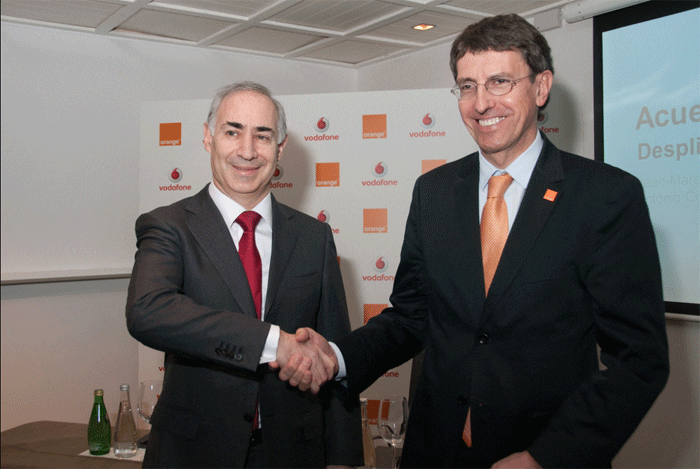 “Nous sommes très satisfaits de présenter ce projet dans lequel deux grands opérateurs locaux, Vodafone España et Orange España unissent leur force pour l’implantation de fibre optique en Espagne” annonçait Jean Marc Vignolles, Président de Orange Espagne (ci-contre à droite sur la photo)…Cet accord suppose aussi une augmentation importante des investissements en Espagne et nous esperons que cela contribue clairement à la croissance économique du pays comme à la création de l’emploi”