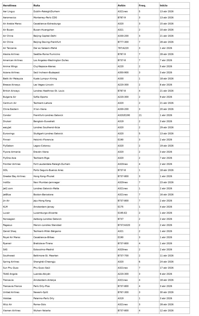 L’ouverture de nouvelles liaisons aériennes en avril témoigne d’une expansion répartie entre les compagnies traditionnelles, les opérateurs hybrides et les compagnies low cost.